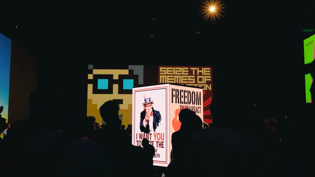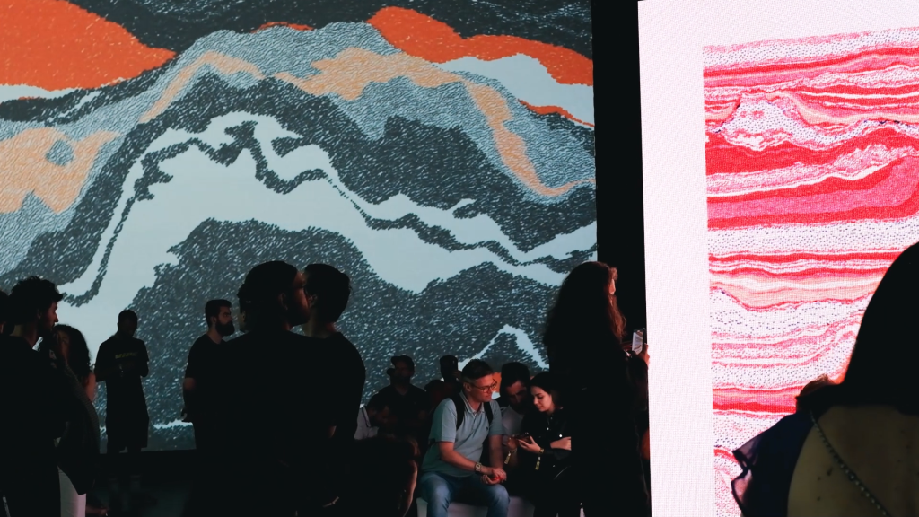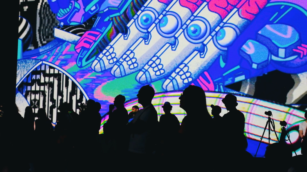 NINA’s Idea & Art: Our concept was to craft a disruptive visual narrative that permeated every facet of the event. Collaborating with renowned NFT artists, we designed an interactive art experience that extended from exhibition spaces and speaker interventions to the closing party, immersing participants in the vibrant culture of Web3.